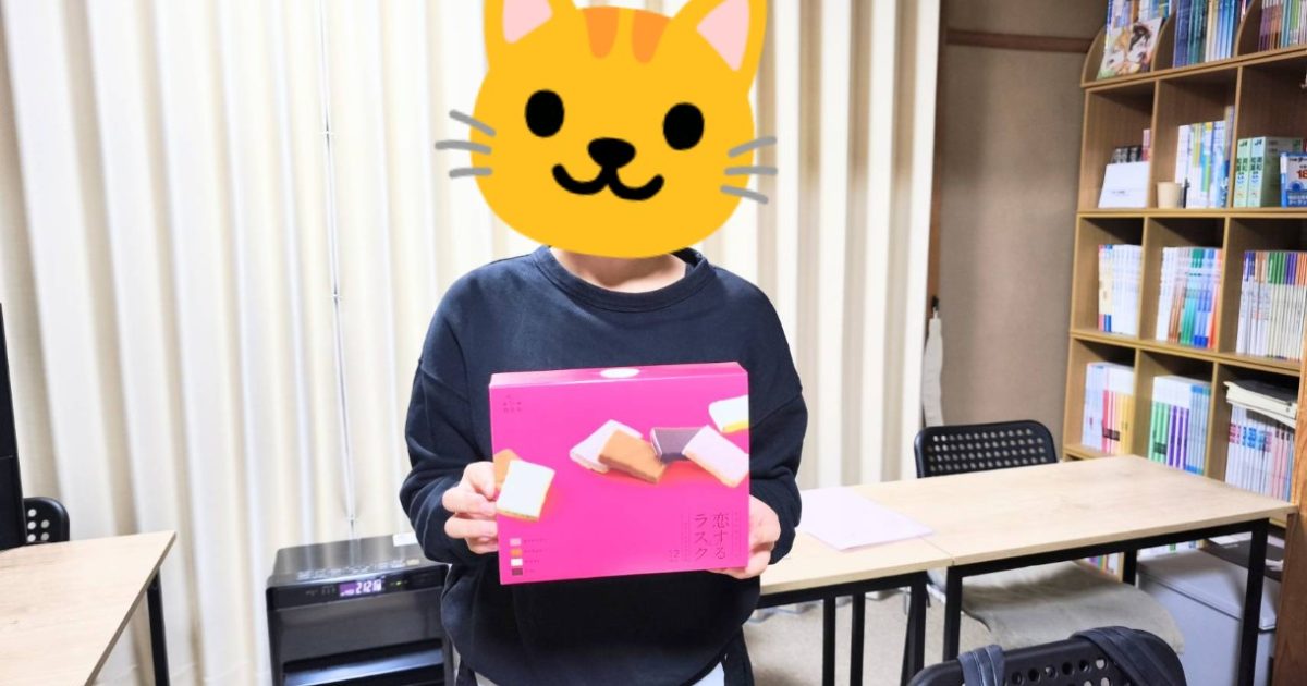 先日修学旅行から帰ってきた生徒さんから、 お土産のラスクをいただきました! 本当にありがとうございます! しかもめちゃくちゃ美味しかったです! カステラをラスクにし、その上からチョコやキャラメルをコーティングしてあり、う […]